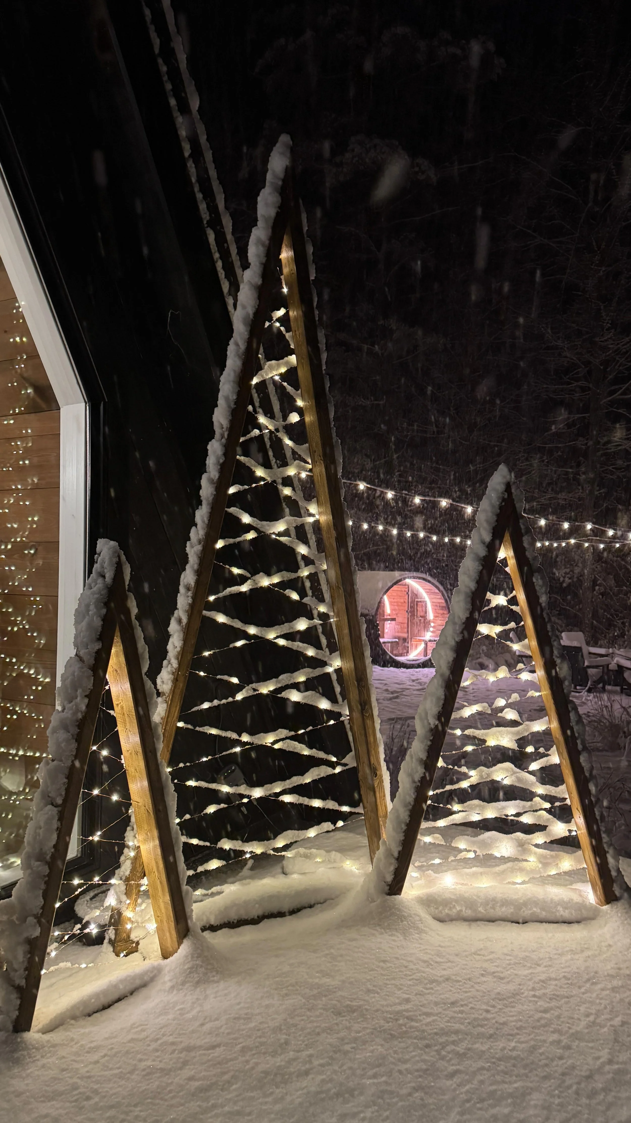 Barrel sauna, sunrise deck facing east, large main deck, smokeless Breeo fire pit, firewood, fire starters, lighter, fire tools, six Adirondack chairs around fire area, six modern acacia wood deck chairs and tables on decks, outdoor dining table, propane powered BBQ and tools, cornhole, oversized Jenga.